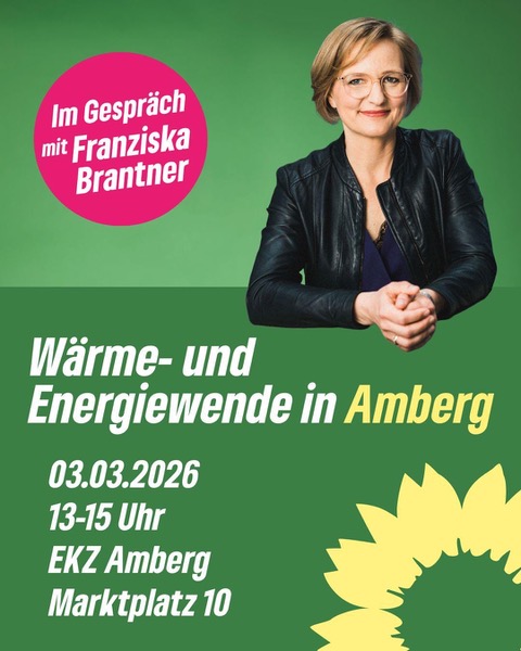 Die Amberger Grünen laden ein zu einem Gespräch mit Dr. Franziska Brantner, der Bundesvorsitzenden von Bündnis 90/Die Grünen über die Wärme- und Energiewende in Amberg.